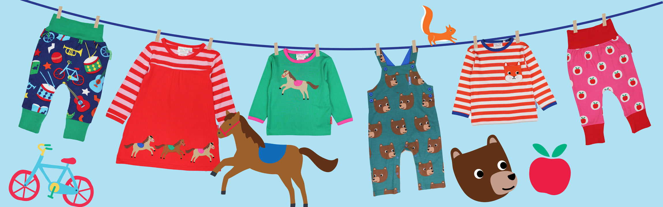 Toby Tiger wurde 1998 von der preisgekrönten Designerin Zoe Mellor gegründet. Wir sind ein familiengeführtes, ethisches und unabhängiges Unternehmen für Baby- und Kinderkleidung. Unsere nachhaltige und GOTS-zertifizierte Kleidung erkennen Sie sofort an der strahlenden Regenbogen-Farbpalette, den lustigen und freundlichen Applikationen sowie den zeitlosen Designs, welche seit über 24 Jahren von Babys, Kindern und Eltern mit Begeisterung getragen werden. Wir bieten eine große Auswahl an nachhaltiger Babykleidung, wie z. B. lang- und kurzärmelige T-Shirts, hübsche Dreh- und Latzkleider, bequeme Latzhosen in kurz und lang, Bio-Babyhosen sowie Bio-Shorts, kuschelige Fleece-Sweatjacken und -Pullover.