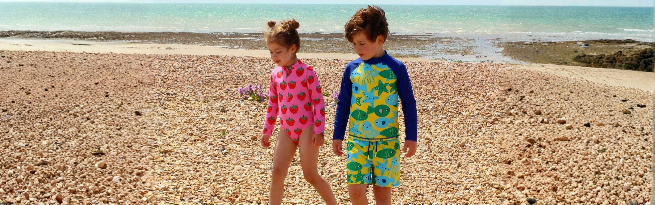 Kinder Badeshirt langarm mit Fisch-Druck, UV-Schutz UPF 50+