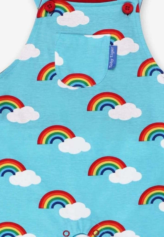 Bio-Baumwoll Kinder Latzhose kurz mit Regenbogen-Druck
