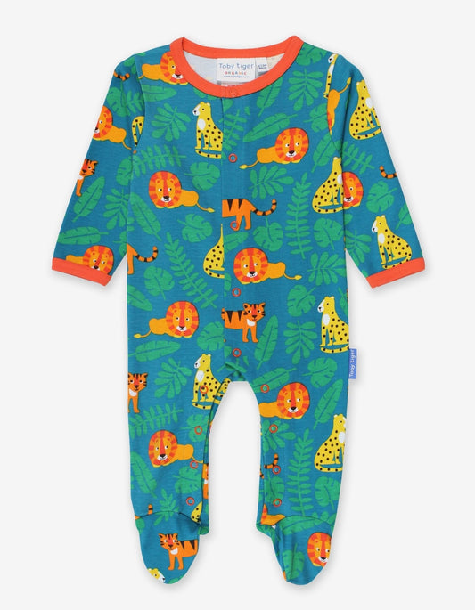 Bio-Baumwoll Baby Schlafanzug einteilig mit Füßen und Raubkatzen-Druck