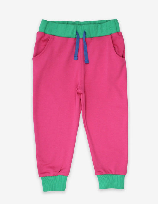 Bio-Baumwoll Kinder Sweathose mit pinken/roten Streifen