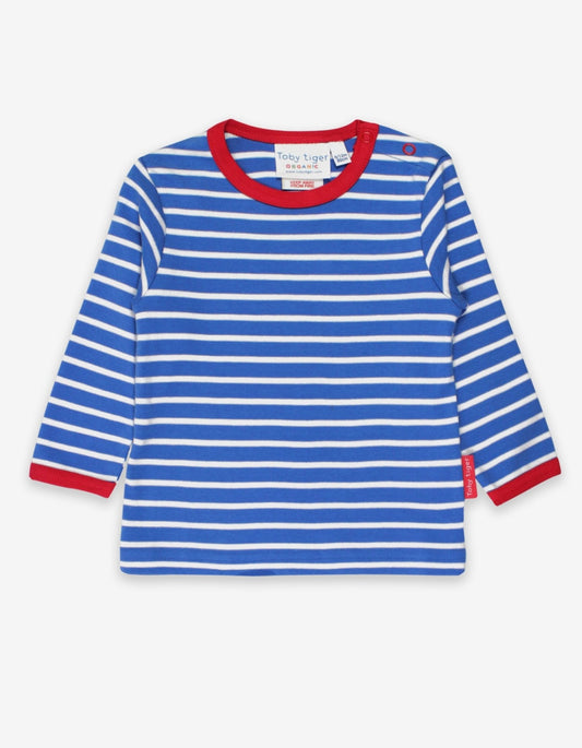 Bio-Baumwoll Kinder Shirt langarm mit blauen Streifen