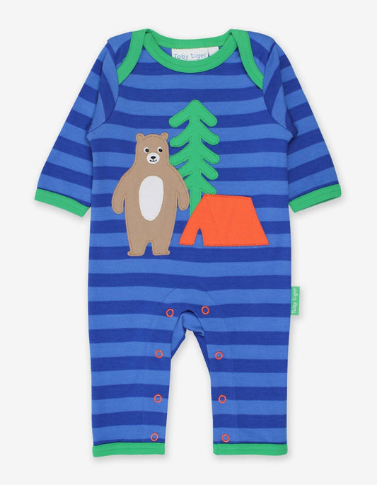 Bio-Baumwoll Baby Schlafanzug einteilig mit Bären-Applikation