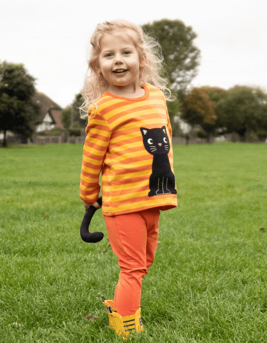 Langarmshirt aus Bio Baumwolle mit Katzen Applikation mit Leggings