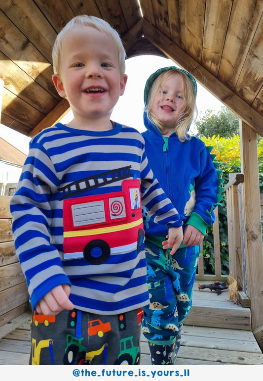 Bio-Baumwoll Kinder Shirt langarm mit Feuerwehrauto-Applikation