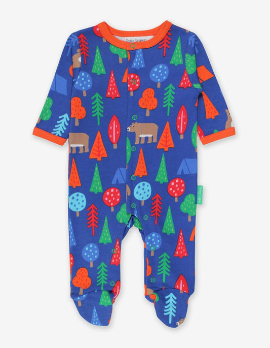 Bio-Baumwoll Baby Schlafanzug einteilig mit Füßen und Camping Bär-Druck