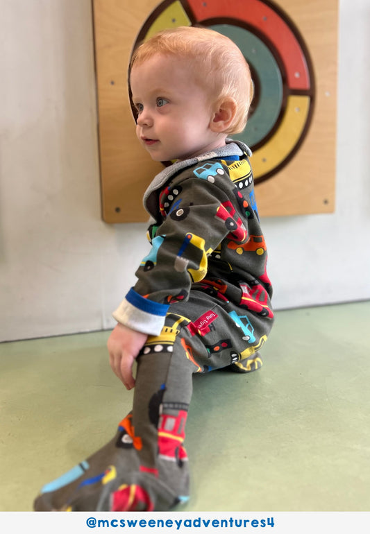 Bio-Baumwoll Baby Schlafanzug einteilig mit Füßen und Fahrzeug-Druck