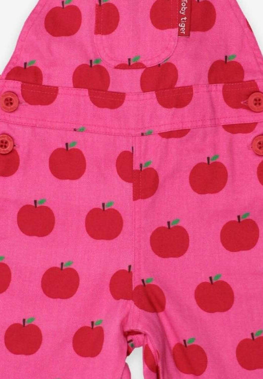 Bio-Baumwoll Kinder Twill- Latzhose mit Apfel-Druck