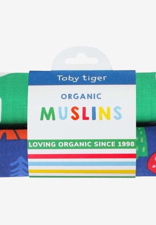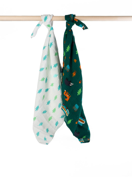 Bio-Baumwoll Musselintücher mit Camping Bär-Druck 2-er Pack