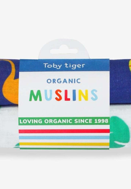 Bio-Baumwoll Musselintücher mit Löwen-Druck 2-er Pack