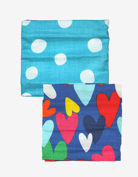 Bio-Baumwoll Musselintücher mit Herz-Druck 2-er Pack