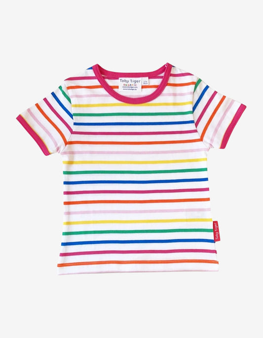 Bio-Baumwoll Kinder Shirt kurzarm mit bunten Streifen