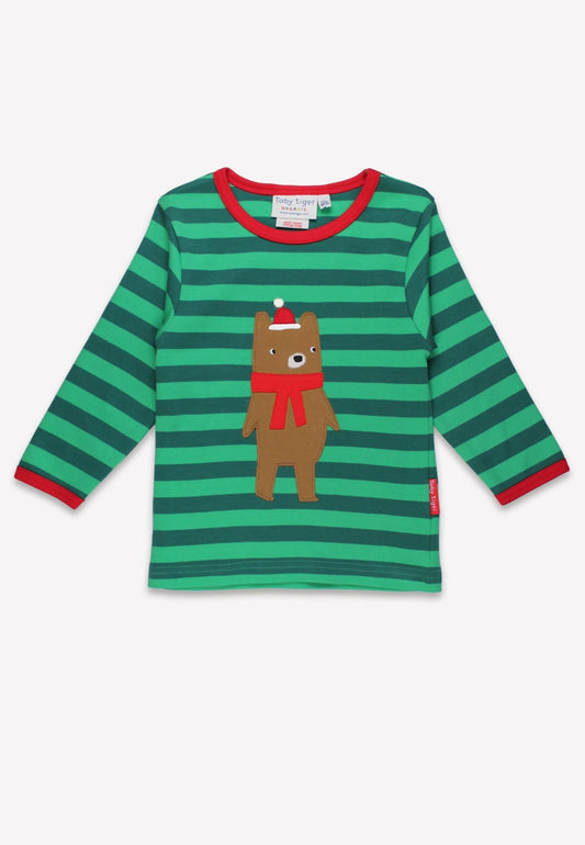 Bio-Baumwoll Kinder Shirt langarm mit Weihnachtsbär-Applikation