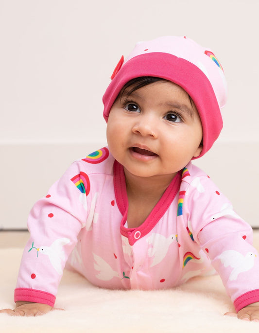 Organic cotton baby gift set with romper, hat and bodysuit with rainbow print