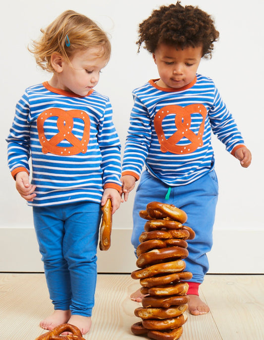 Organic cotton children's long-sleeved shirt with pretzel appliqué