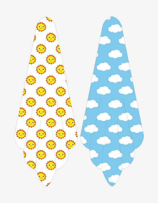 Organic cotton muslin cloths with sun and cloud print, 2-pack