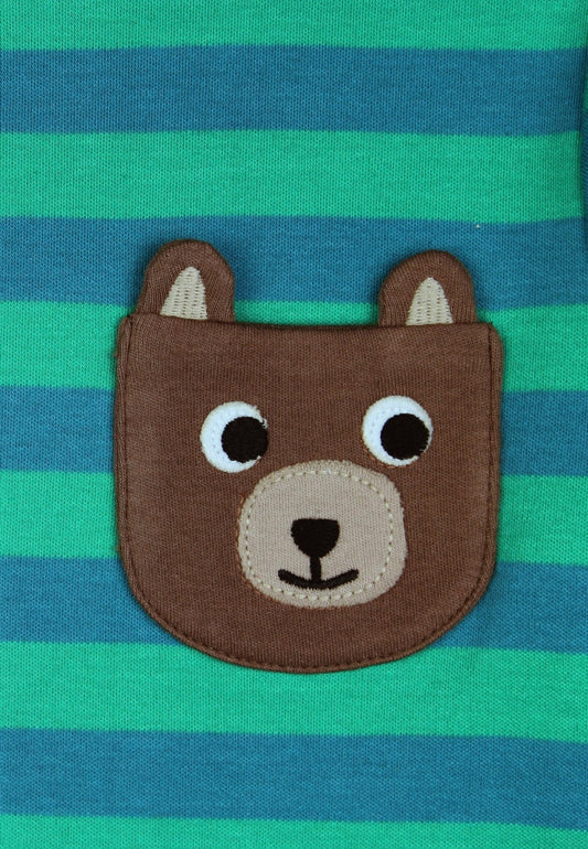 Bio-Baumwoll Kinder Langarmshirt, gestreift mit Bären-Applikation auf der Brusttasche