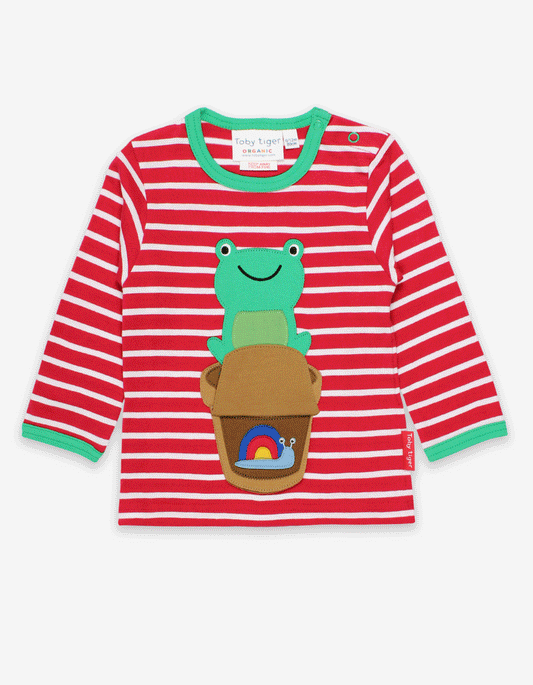 Organic cotton children's long-sleeved shirt with frog appliqué
