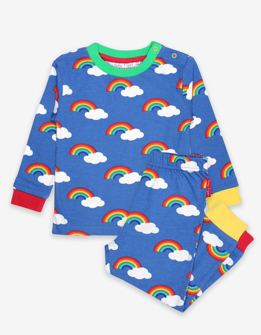 Colorful rainbow designs made from organic cotton: Discover Toby Tiger's cheerful children's clothing.