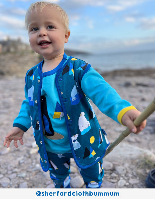 Organic cotton children's reversible fleece sweat jacket with Arctic print