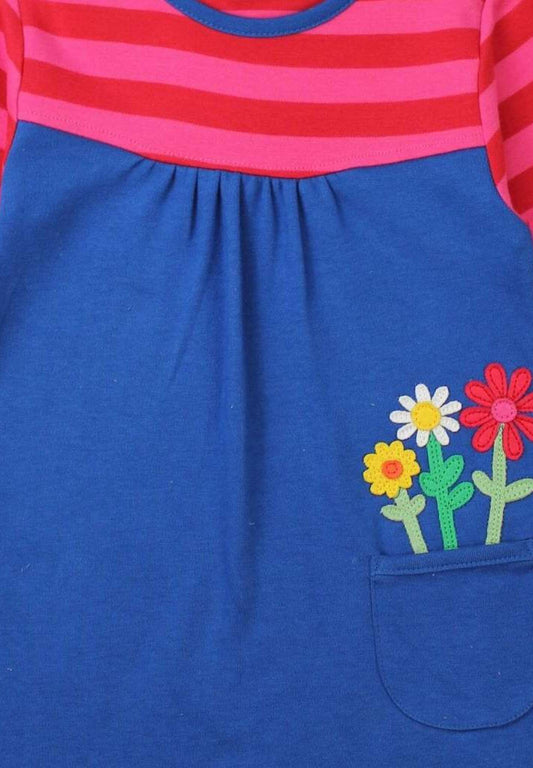 Organic cotton kids' jersey dress long sleeve with flower appliqué