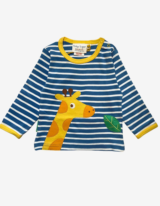 Organic cotton children's long-sleeved shirt with giraffe appliqués