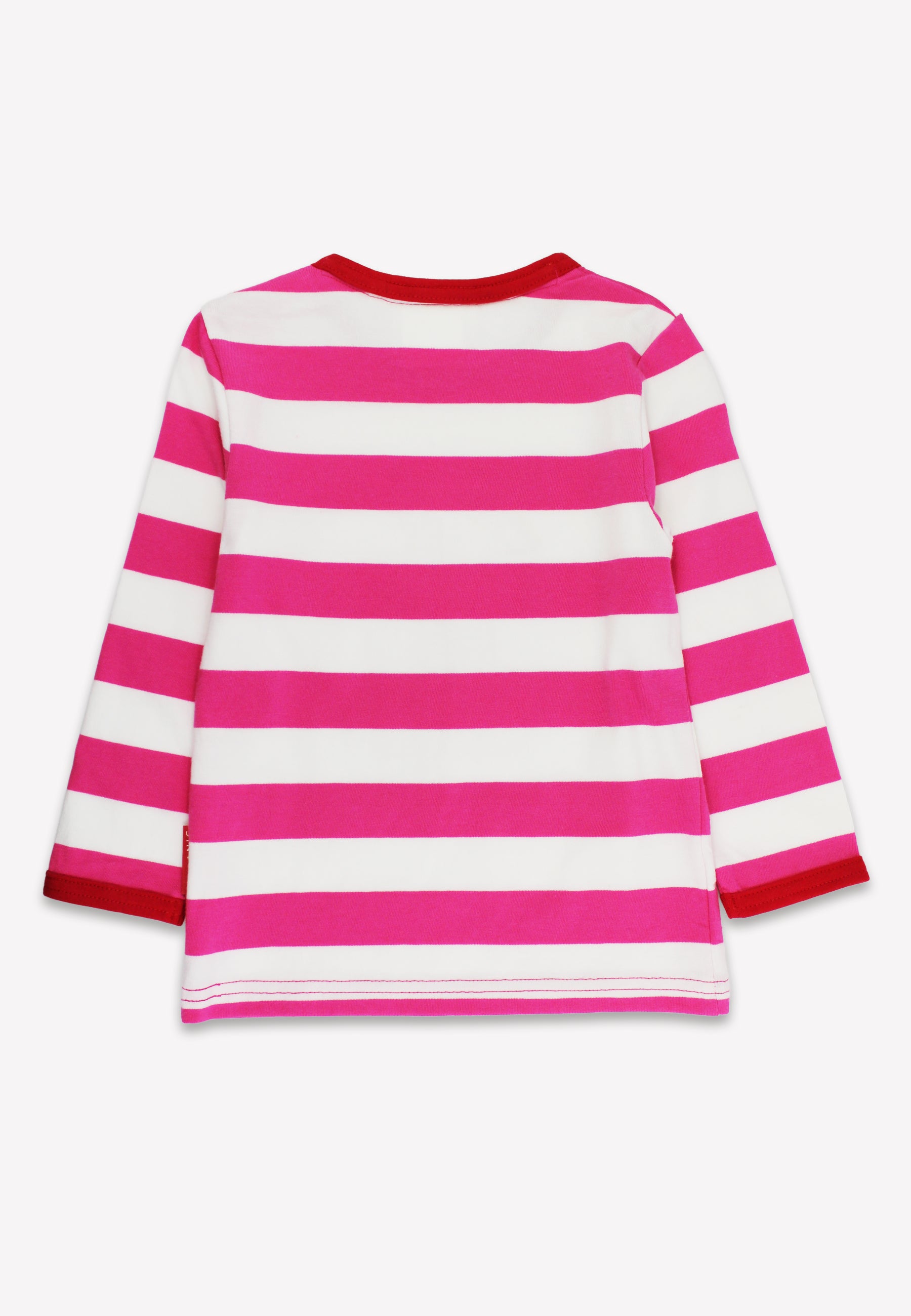 Bio-Baumwoll Kinder Langarmhirt rot-gestreift mit Zwei-Applikation
