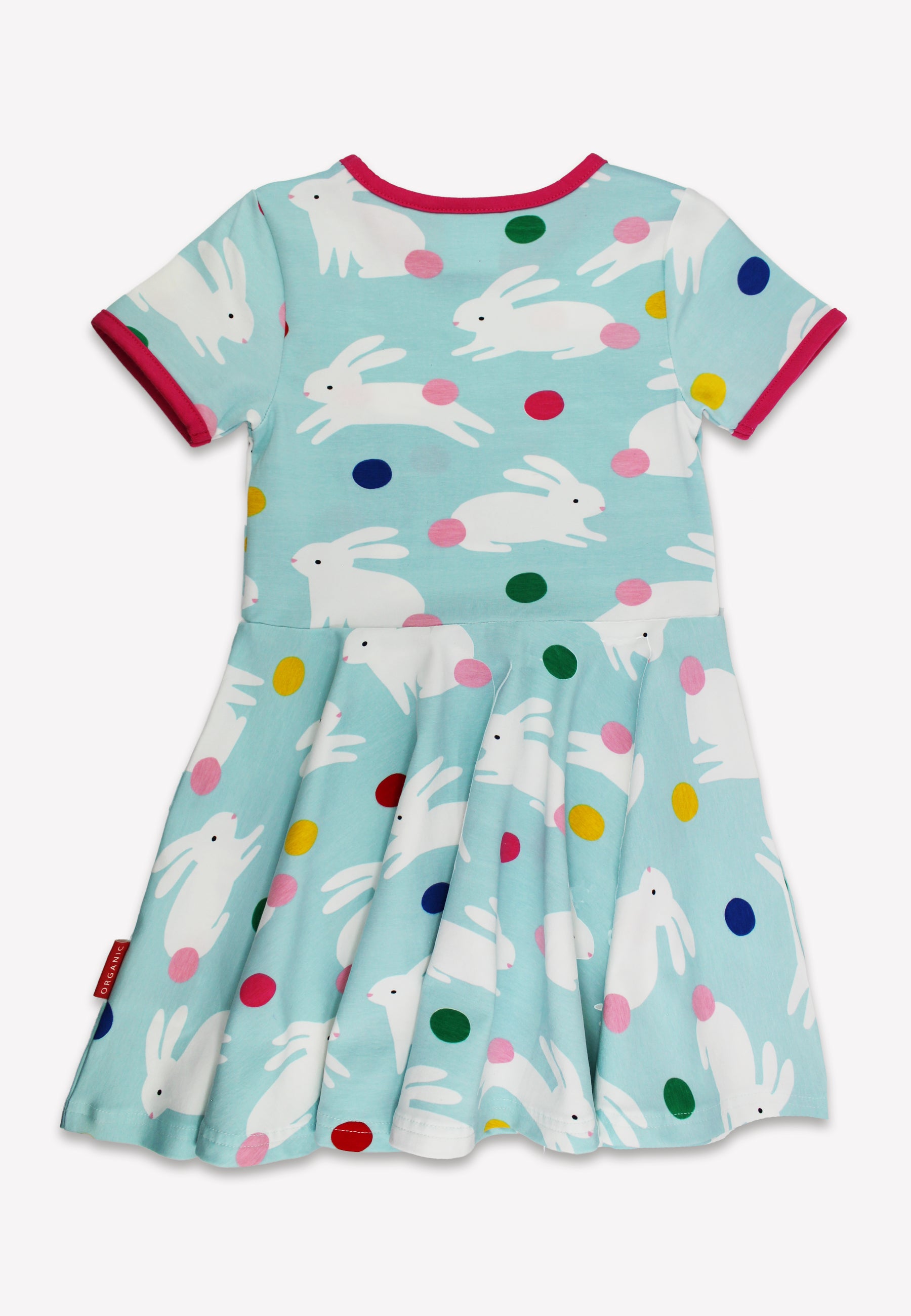 Bio-Baumwoll Kinder Skaterkleid kurzarm mit Hasenparty-Druck